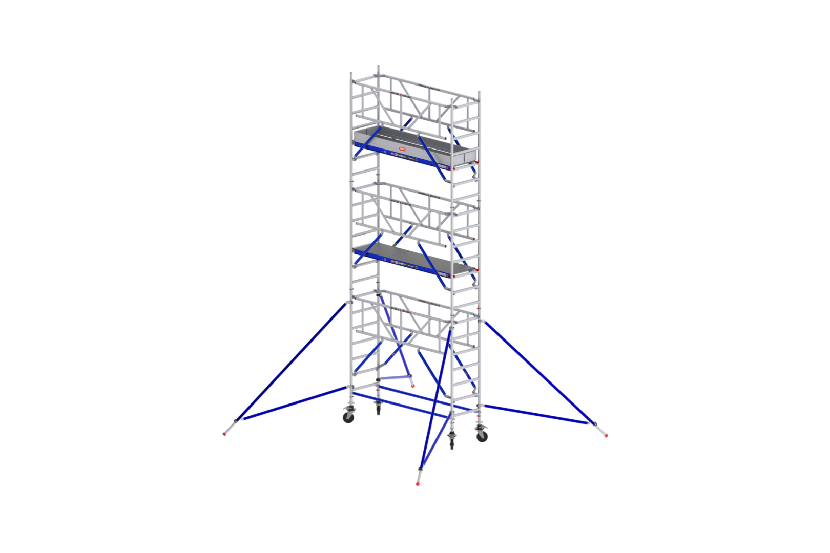 Ondanks het compacte formaat bieden de steigers maximale werkruimte en stabiliteit. Het brede platform van 2,50 meter zorgt voor voldoende bewegingsvrijheid en ruimte voor gereedschap of materialen. Alle steigers zijn voorzien van robuuste wielen, waardoor je ze eenvoudig kunt verplaatsen op de werkplek.