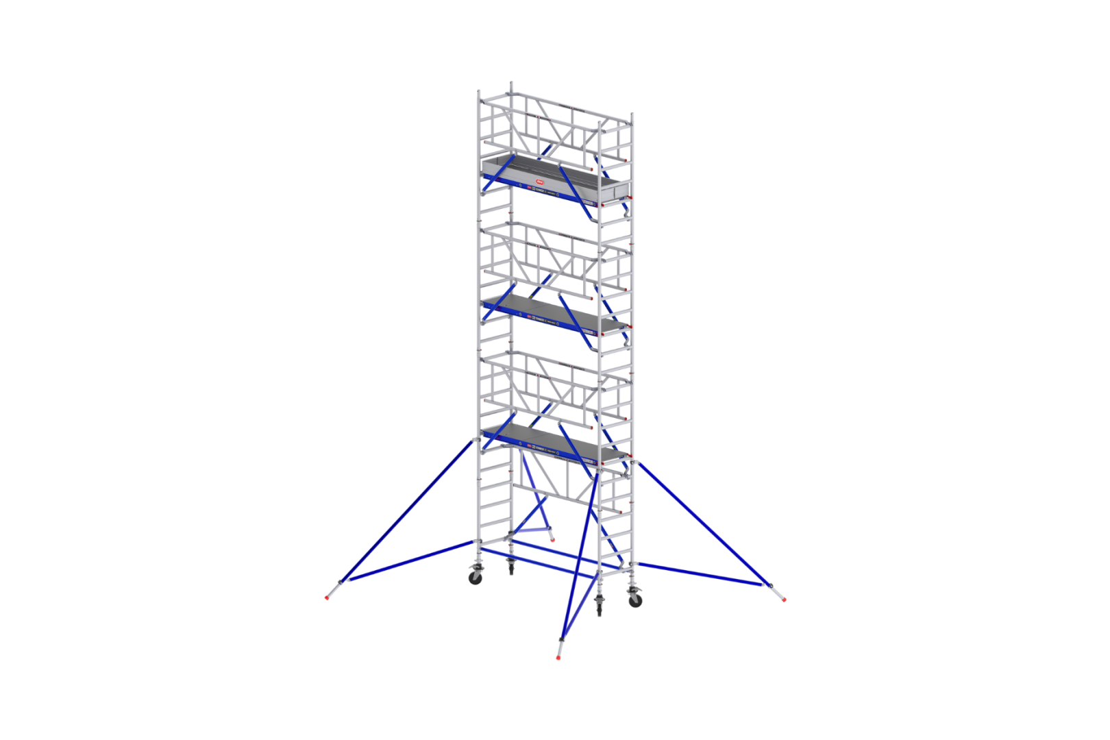 Ondanks het compacte formaat bieden de steigers maximale werkruimte en stabiliteit. Het brede platform van 2,50 meter zorgt voor voldoende bewegingsvrijheid en ruimte voor gereedschap of materialen. Alle steigers zijn voorzien van robuuste wielen, waardoor je ze eenvoudig kunt verplaatsen op de werkplek.