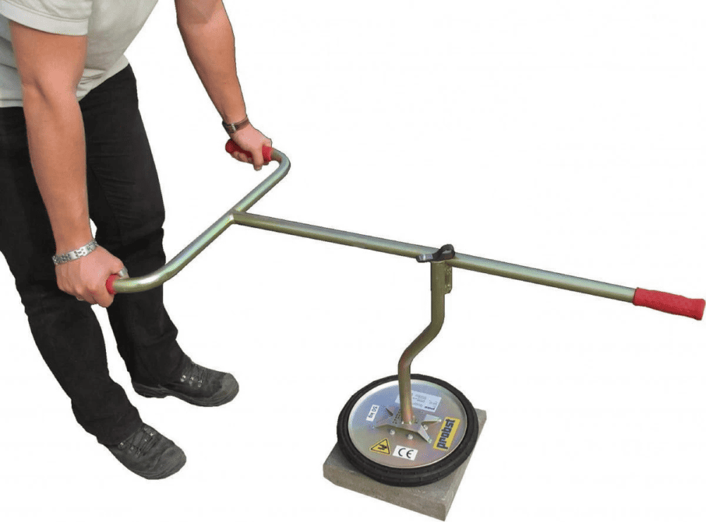 Tegeltiller 50 kg met vacuümzuiger Ø280 mm voor ergonomisch en precies plaatsen van zware tegels en platen. De handbediende zuignap hecht op schone, vlakke en dichte oppervlakken, zodat elementen gecontroleerd kunnen worden opgetild, verplaatst en exact gepositioneerd zonder wrikken of overbelasting van de rug. Dankzij het 2-persoons ontwerp werk je vlot en stabiel aan opritten, terrassen en tuinpaden, met een strakke afwerking omdat corrigeren mogelijk blijft tot het moment van neerleggen. De rubberen zuigplaat biedt grip en bescherming, terwijl het compacte formaat zowel in kleine tuinen als op grotere projecten goed inzetbaar is. Poreuze materialen (zoals sommige natuursteen- of klinkervarianten) zijn minder of niet geschikt. Zo combineert deze tegeldrager precisie, veiligheid en snelheid bij het plaatsen van tegels tot 50 kilogram.